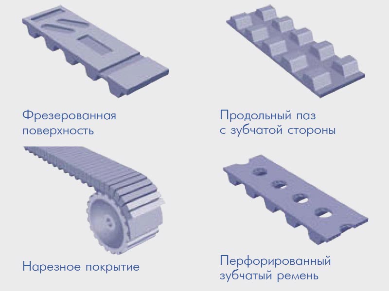 Дополнительное изменение формы и размеров стандартных зубчатых ремней‚ ремней с покрытием и ремней с толкателями расширяет области их применения.